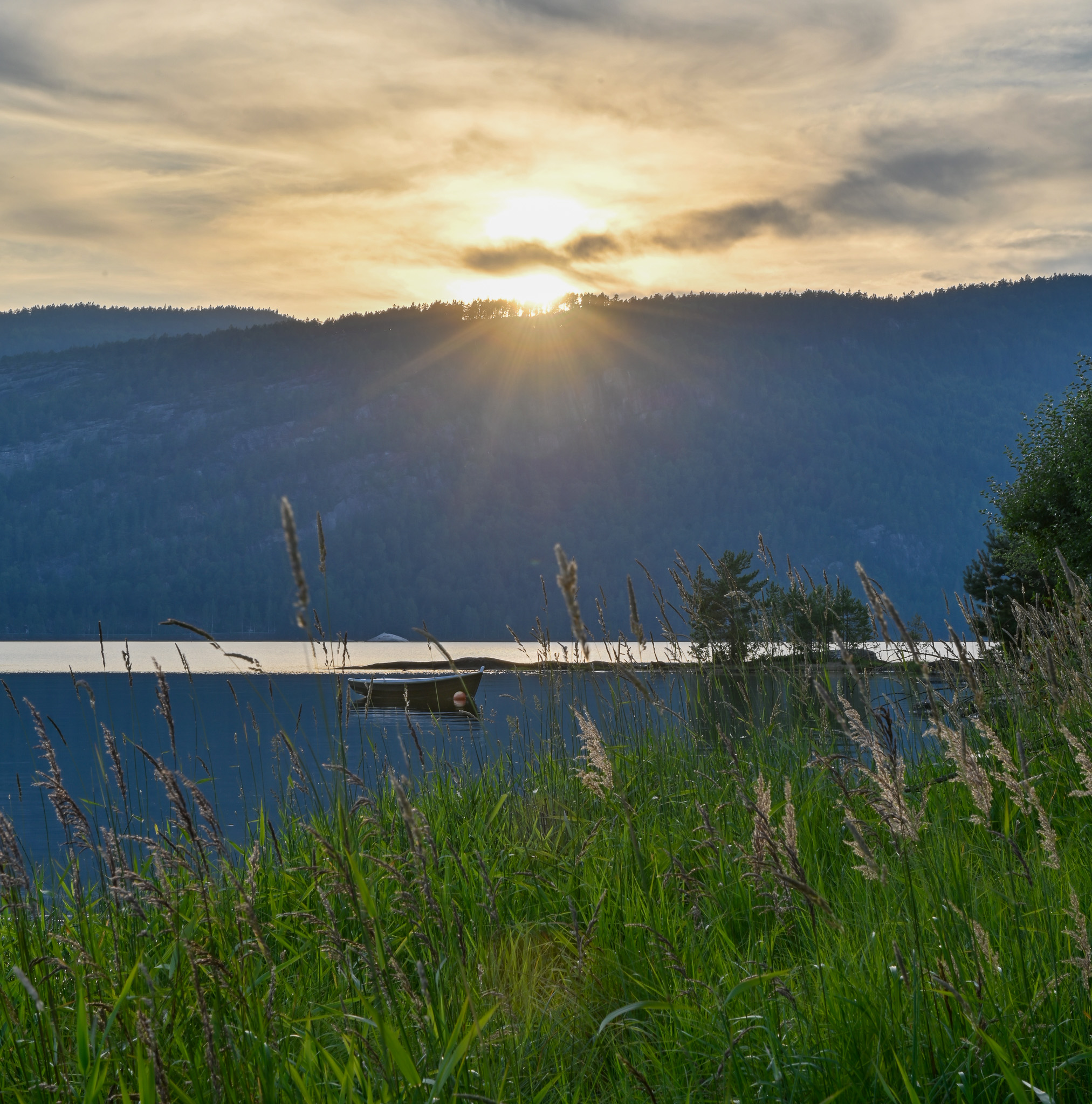 Solnedgangen sett frå Grendi 20. juli 2025.
