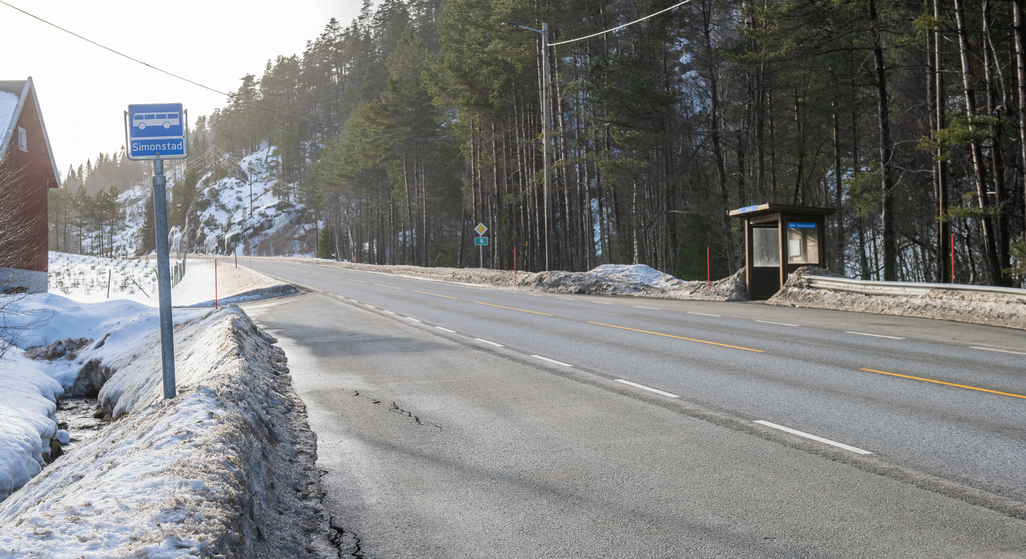 Simonstad (bussholdeplass) på Kile i Hægeland 27. februar 2026.
