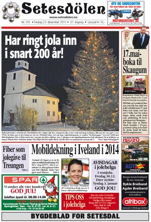 Setesdølen nr. 101, 2011 kom ut 23. desember 2011. Setesdølen hadde 20 sider denne dagen.