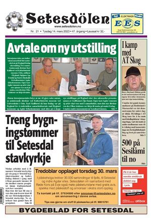 Setesdølen nr. 21, 2023 kom ut tysdag 14. mars 2023 med 12 sider.