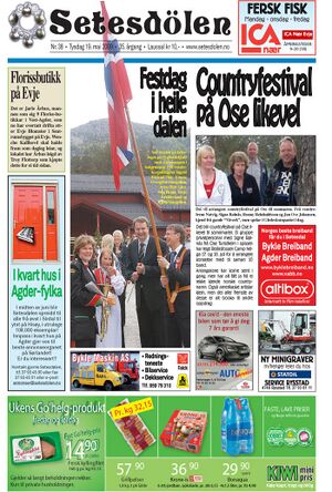 Setesdølen nr. 38, 2009 kom ut tysdag 19. mai 2009. Setesdølen hadde 12 sider denne dagen.