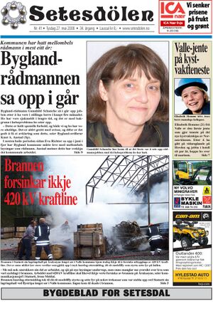 Setesdølen nr. 41, 2008 kom ut tysdag 27. mai 2008. Setesdølen hadde 12 sider denne dagen.