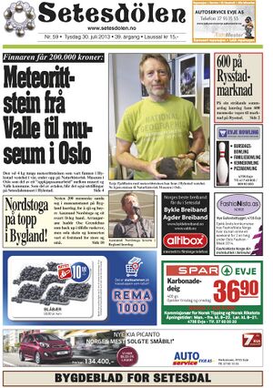 Setesdølen nr. 59, 2013 kom ut tysdag 30. juli 2013. Setesdølen hadde 12 sider denne dagen.