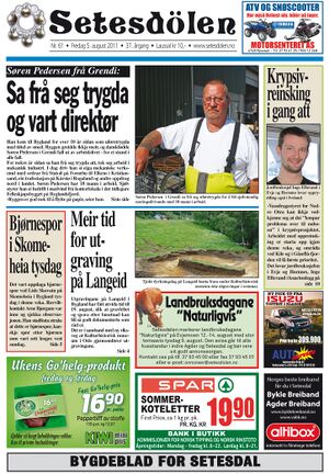 Setesdølen nr. 61, 2011 kom ut fredag 5. august 2011. Setesdølen hadde 16 sider denne dagen.