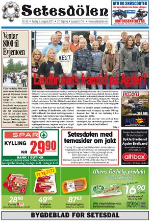 Setesdølen nr. 62, 2011 kom ut tysdag 9. august 2011. Setesdølen hadde 16 sider denne dagen.