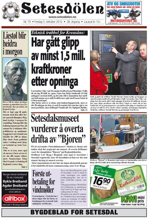 Setesdølen nr. 79, 2012 kom ut fredag 5. oktober 2012. Setesdølen hadde 16 sider denne dagen.