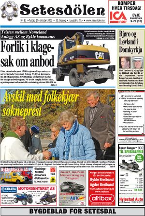 Setesdølen nr. 83, 2009 kom ut tysdag 20. oktober 2009. Setesdølen hadde 12 sider denne dagen.