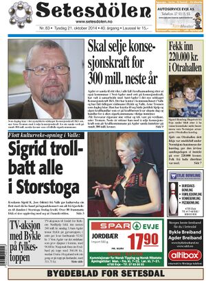 Setesdølen nr. 83, 2014 kom ut tysdag 21. oktober 2014. Setesdølen hadde 12 sider denne dagen.