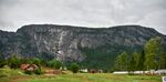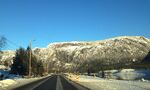 På Bergstad, noko sunnanfor Hagen på Helle, sette entreprenøren opp brakkeriggen under omlegginga av RV 9. Straumsfjødd i bakgrunnen. Siri Johannessen (5. januar 2021) |