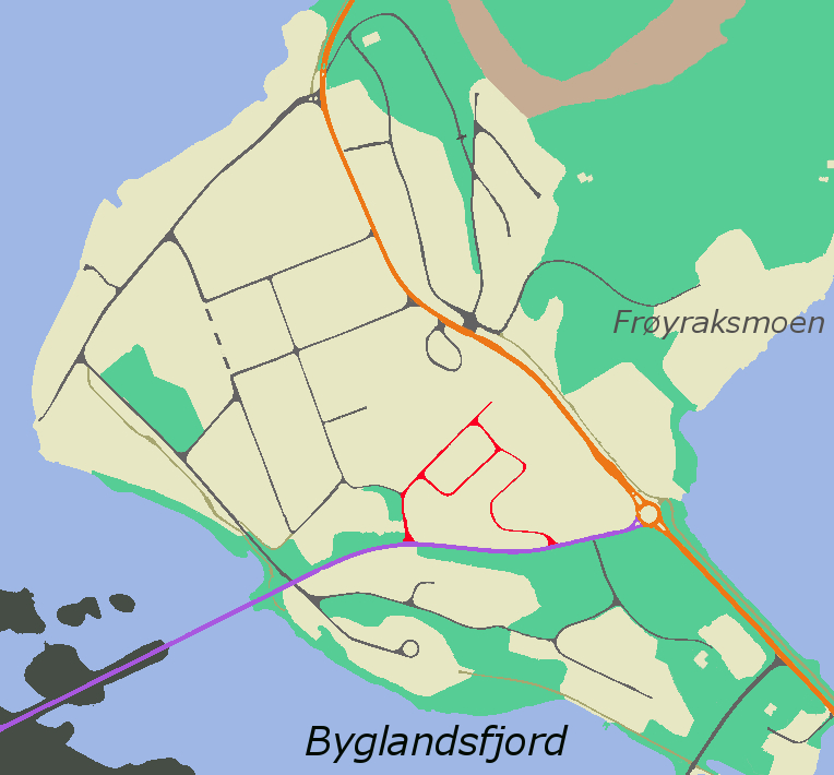 | Andre versjoner | Utsnitt av fil:Byglandsfjord sentrum kart.jpg med Hampefjells løp i rødt |