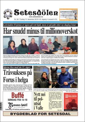 Setesdølen nr. 95, 2019 kom ut tysdag 10. desember 2019. Setesdølen hadde 20 sider denne dagen.