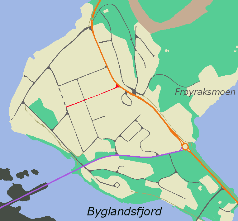 | Andre versjoner | Utsnitt av fil:Byglandsfjord sentrum kart.jpg med Nutensgates løp i rødt |
