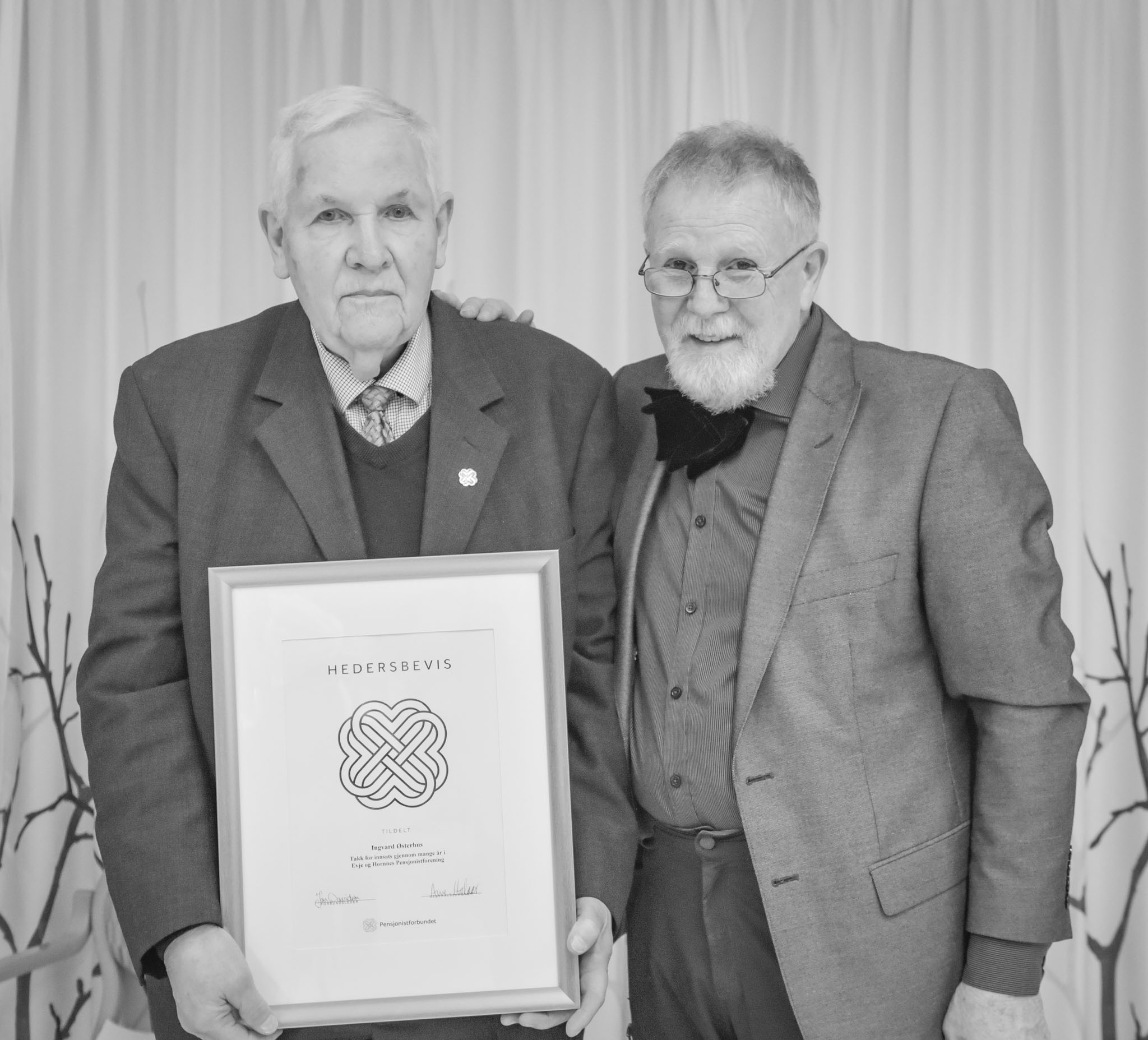 Ingvard Østerhus og Roy Frimanslund under 50-årsjubileum for Evje og Hornnes pensjonistforening på Evjeheimen 6. mars 2023.