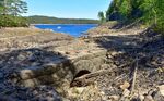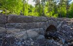 Den første jernbanebrua ved Øvre Gåseflå. I månadsskiftet mai/juni 2020 var Gåseflåfjorden tappa ned i samband med vedlikehaldsarbeid på inntaket til Iveland kraftstasjon. Brua var då igjen synleg for nokre dagar.