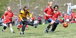 Spelarar frå Otra IL og Valle IL kjempar om ballen under Bygland Cup i Bygland 2. juni 2012.