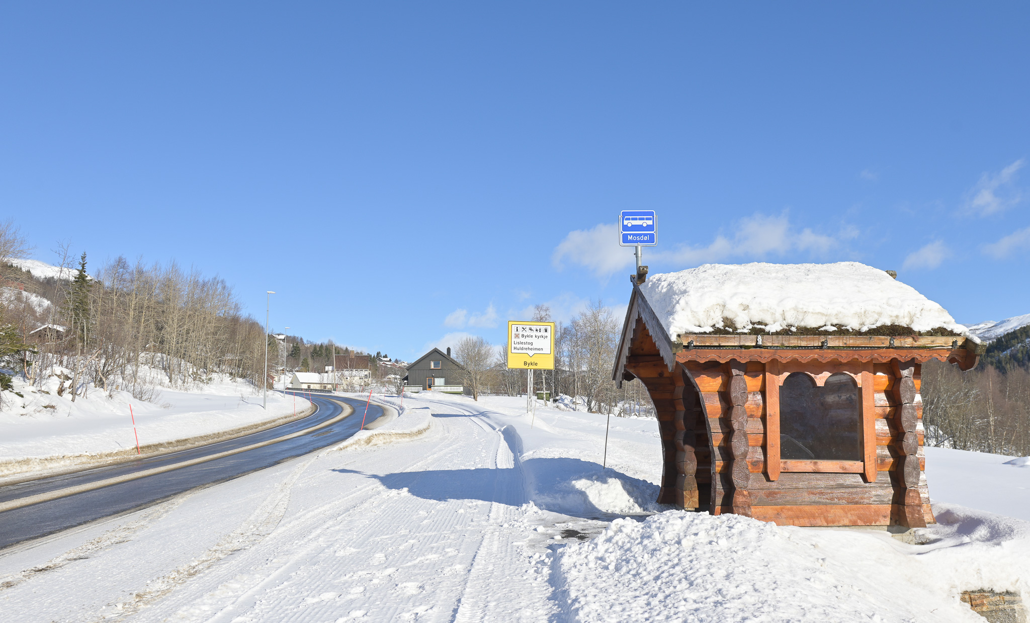 Mosdøl (bussholdeplass) i Bykle kyrkjebygd 21. februar 2026.