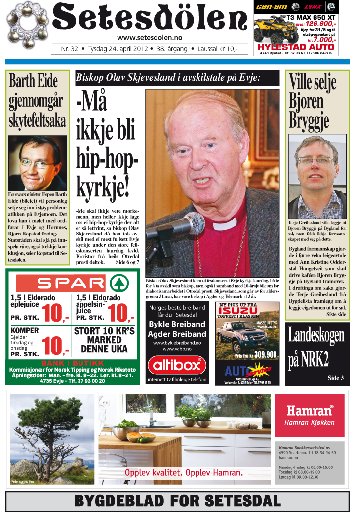 | gjeldande | 25. april 2012 kl. 10:48 | 717 × 1 039 (728 KB) | Harald Haugland (diskusjon | bidrag) | Etter avtale med Sigurd Haugsgjerd Kategori:Setesdølens forsider 2012 |