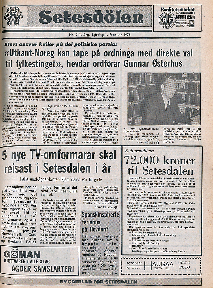 Framsida av Setesdølen nr. 2, 1975. Etter avtale med red. Sigurd Haugsgjerd.