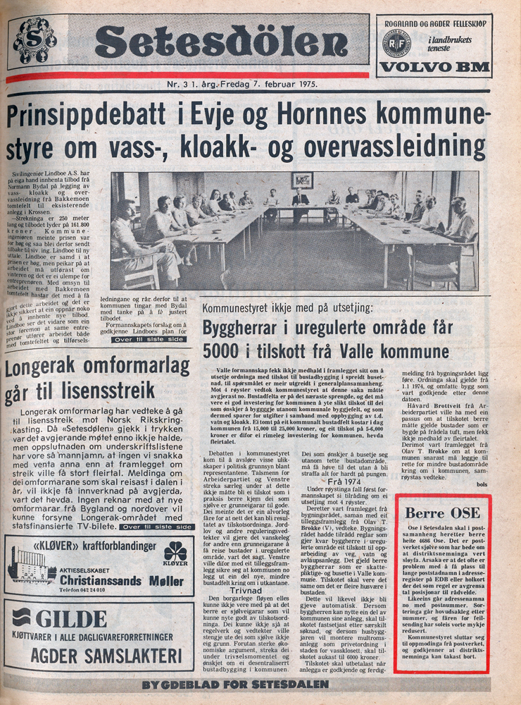 Framsida av Setesdølen nr. 3, 1975. Etter avtale med red. Sigurd Haugsgjerd.