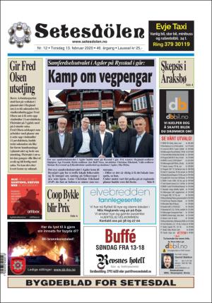 Setesdølen nr. 12, 2020 kom ut torsdag 13. februar 2020. Setesdølen hadde 12 sider denne dagen.
