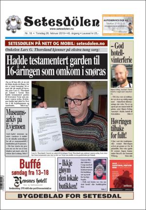 Setesdølen nr. 16, 2019 kom ut tysdag 26. februar 2019. Setesdølen hadde 12 sider denne dagen.