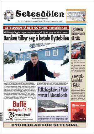 Setesdølen nr. 18, 2019 kom ut tysdag 5. mars 2019. Setesdølen hadde 12 sider denne dagen.