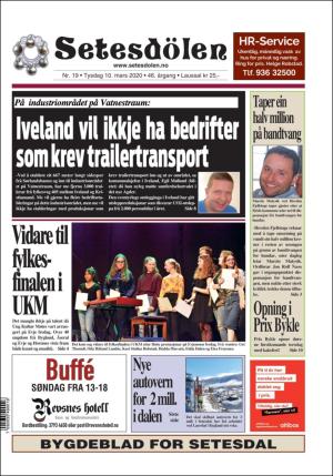 Setesdølen nr. 19, 2020 kom ut tysdag 10. mars 2020. Setesdølen hadde 12 sider denne dagen.