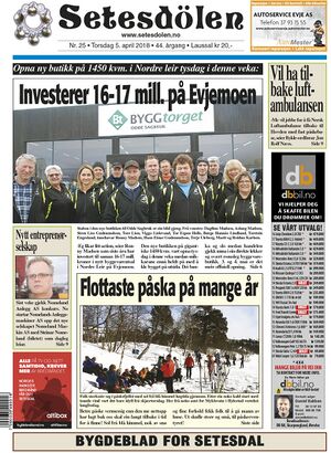 Setesdølen nr. 25, 2018 kom ut torsdag 5. april 2018. Setesdølen hadde 16 sider denne dagen.