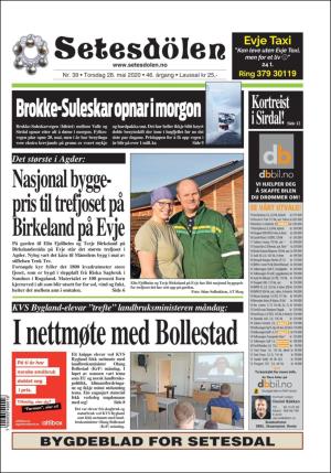 Setesdølen nr. 39, 2020 kom ut torsdag 28. mai 2020. Setesdølen hadde 16 sider denne dagen.