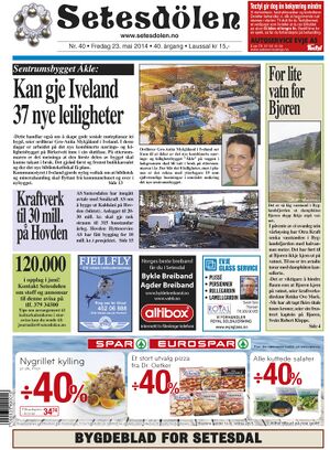 Setesdølen nr. 40, 2014 kom ut fredag 23. mai 2014. Setesdølen hadde 20 sider denne dagen.