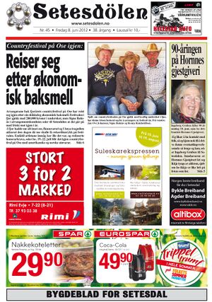 Setesdølen nr. 45, 2012 kom ut fredag 8. juni 2012. Setesdølen hadde 16 sider denne dagen.
