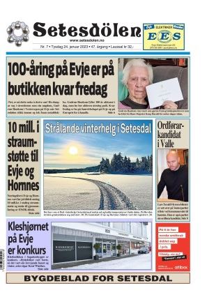 Setesdølen nr. 7, 2023 kom ut tysdag 24. januar 2023 med 12 sider.