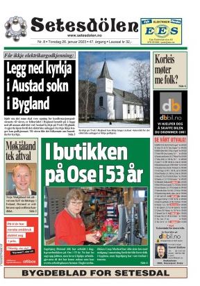 Setesdølen nr. 8, 2023 kom ut torsdag 26. januar 2023 med 12 sider.