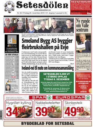 Setesdølen nr. 95, 2015 kom ut fredag 20. november 2015. Setesdølen hadde 16 sider denne dagen.