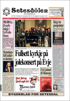 Setesdølen nr. 98, 2019 kom ut torsdag 19. desember 2019. Setesdølen hadde 24 sider denne dagen.