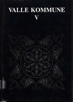 Valle kommune V Gards- og ættesoge Valle er femte band i gards- og ættesoga for Valle. Boka omhandlar gardane i grendene Tveitebø og Homme på austsida av Otra, nord for Valle sentrum. Forfattar er Alfred Ryningen. Boka kom ut i 1987. Utgjevar er Valle kommune. Ho er trykka av Reklametrykk Grafisk AS, Bergen. 554 sider.