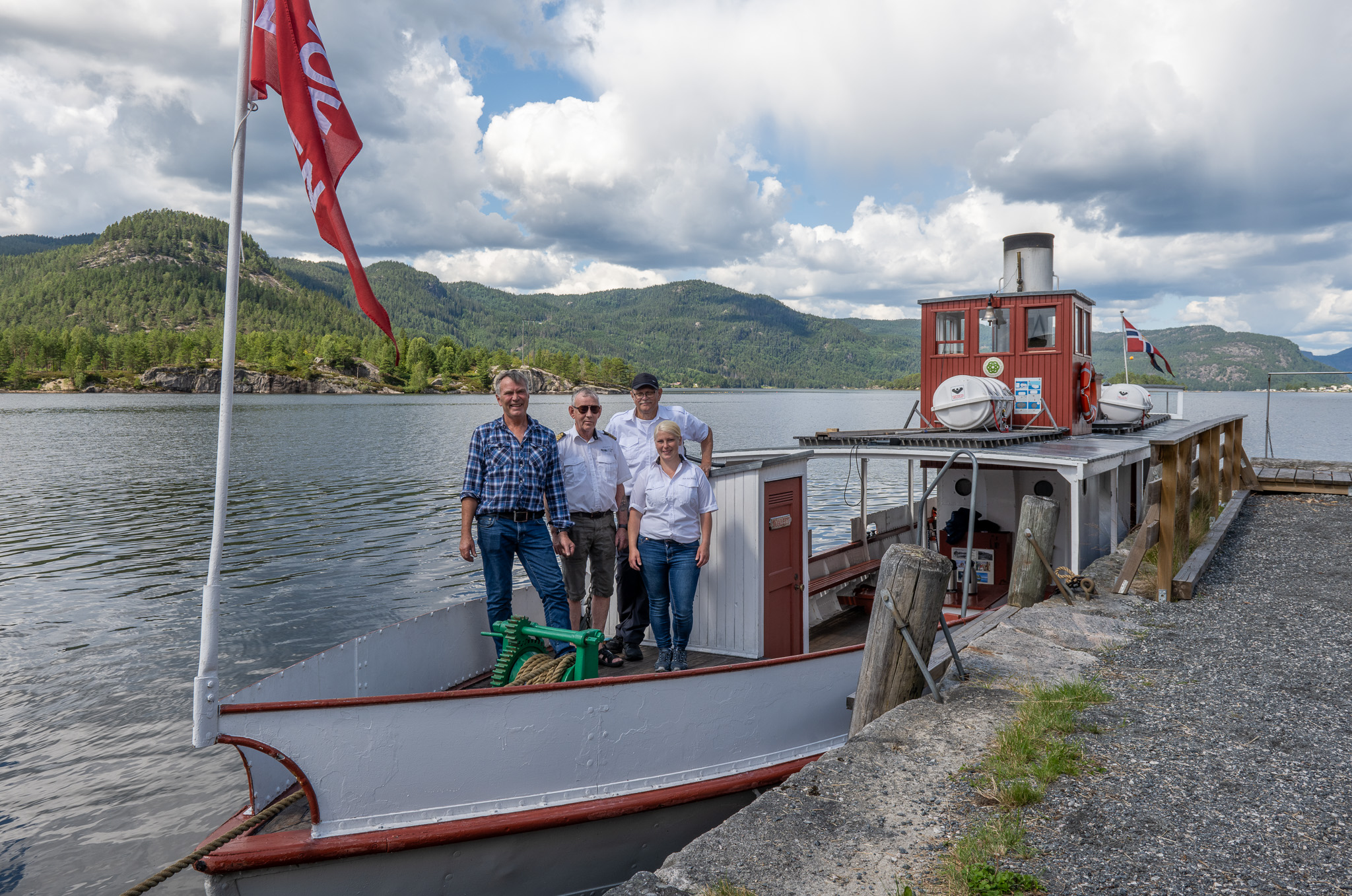 Mannskapet på Bjoren etter endt tur onsdag 24. juli 2024. F.v. Alf Rune Træland, Sven Robert Kleppe, Knut Haugetveit og Therese Mølø Larsen.