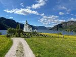 | [[File:Sandnes kyrkje 27 mai 22.jpeg|thumb|Sandnes kyrkje som står i Åraksbø{{Byline|[[Knut Eldhuset (1958)]]}}]] | |||