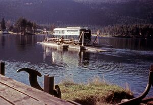 Fram til 1965 var ferja godkjent for last inntil 10 tonn. Ferjemann er Tarjei Heggtveit.