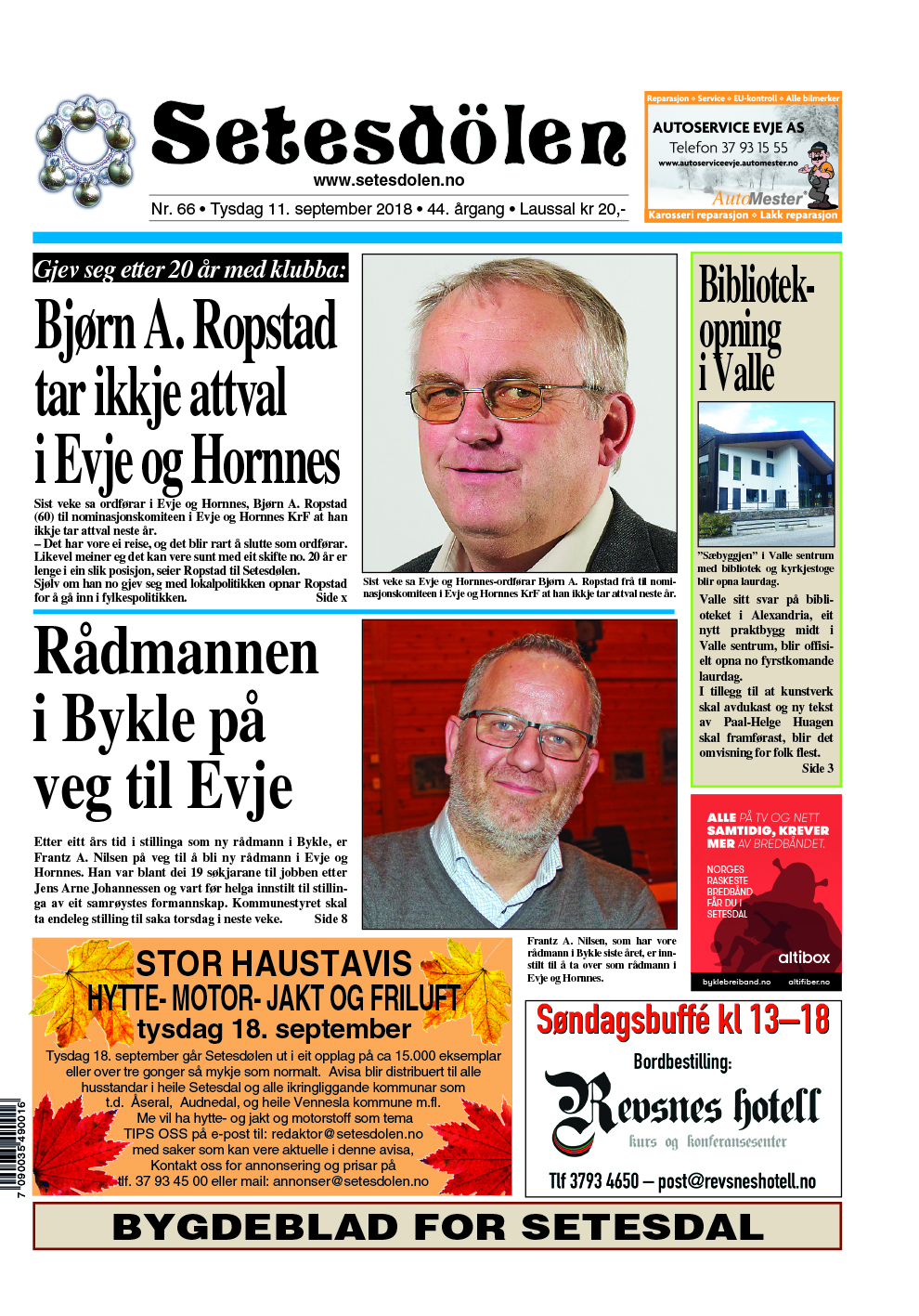 Versjonen frå 13. september 2018 kl. 12:40 av Harald Haugland (diskusjon | bidrag) (Harald Haugland lastet opp en ny versjon av Fil:Setesdølen6618.jpg)