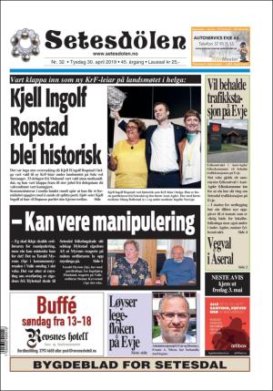 Setesdølen nr. 32, 2019 kom ut tysdag 30. april 2019. Setesdølen hadde 12 sider denne dagen.