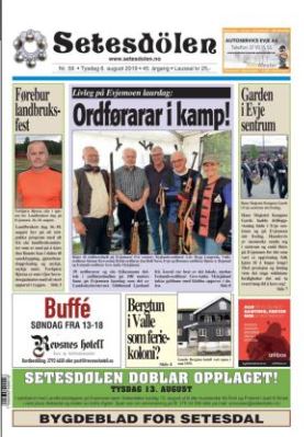 Setesdølen nr. 59, 2019 kom ut 6. august 2019. Setesdølen hadde 12 sider denne dagen.