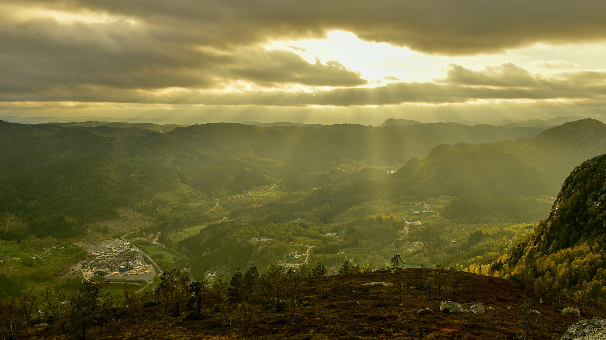 Kveld i Eiken, sett frå Hekkfjellet 1. mai 2019.