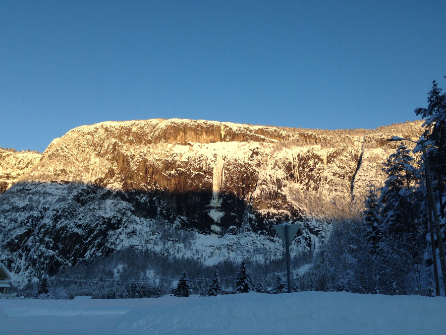 Straumsfjødd sett fra avkjørselen til Straume på RV 9 |