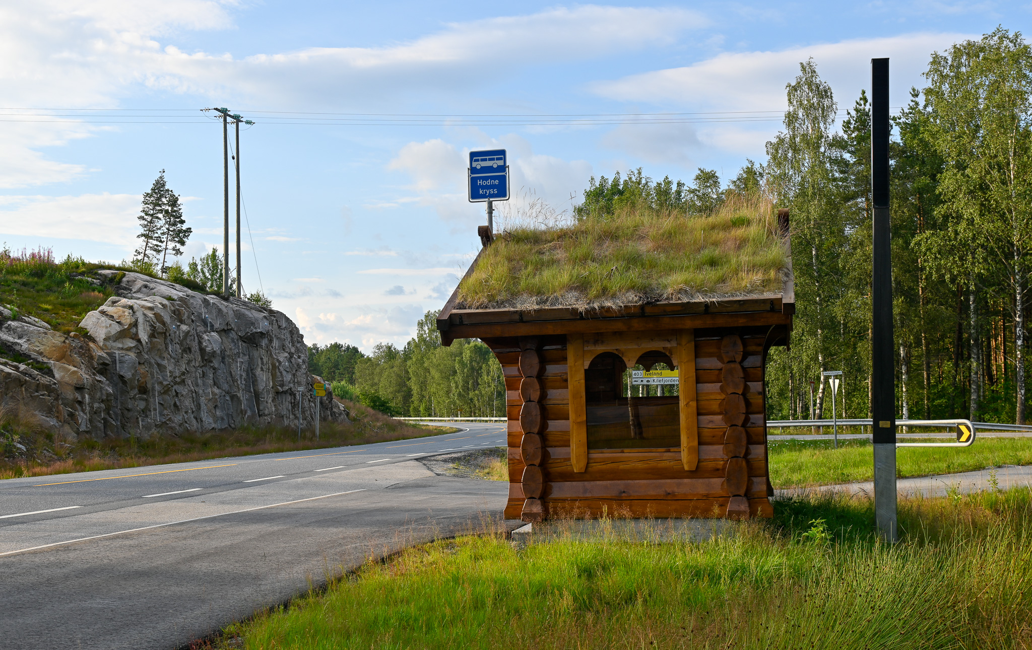 Hodne kryss (bussholdeplass) på Vestre Hodne i Hornnes 15. juli 2025.