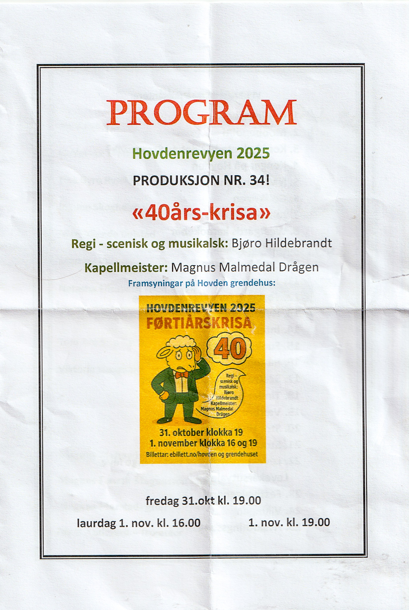Hovdenrevyen 2025, framside program.