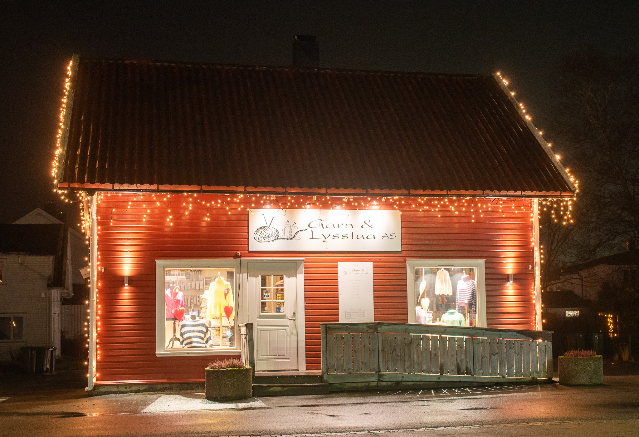Garn og Lysstua på Evje om kvelden 11. november 2025.