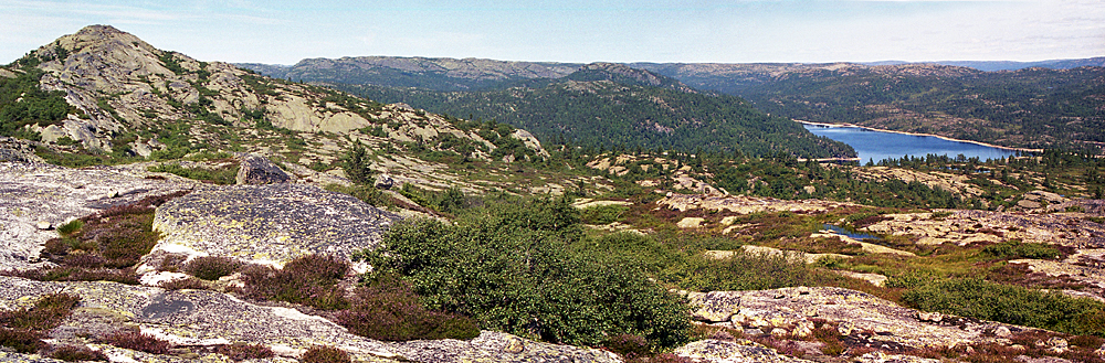 Toppen av Midtstrandnuten til venstre, videre Hakefjell, Skeisnuten og litt av Gyvatn.