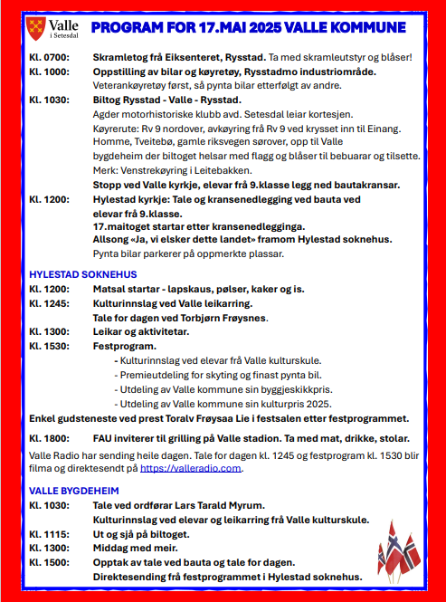 Programmet Valle kommune sendte ut til alle husstander med oversikt over hva som skjedde 17. mai 2025.