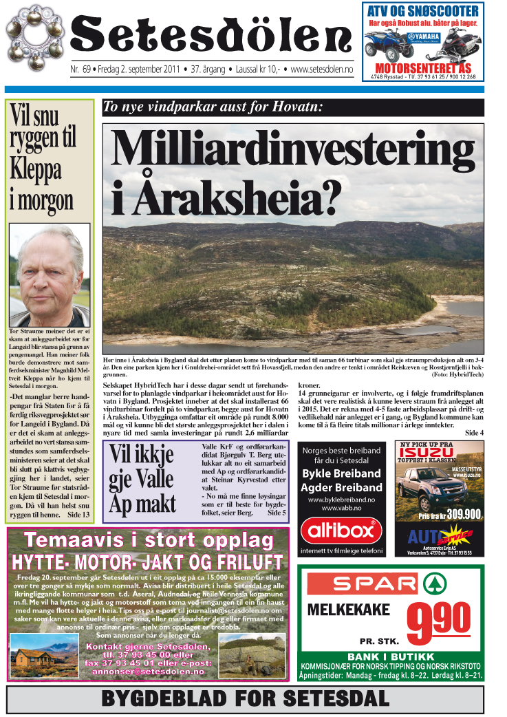 | gjeldande | 3. september 2011 kl. 22:29 | 737 × 1 042 (804 KB) | Harald Haugland (diskusjon | bidrag) | Etter avtale med Sigurd Haugsgjerd Kategori:Setesdølens forsider 2011 |